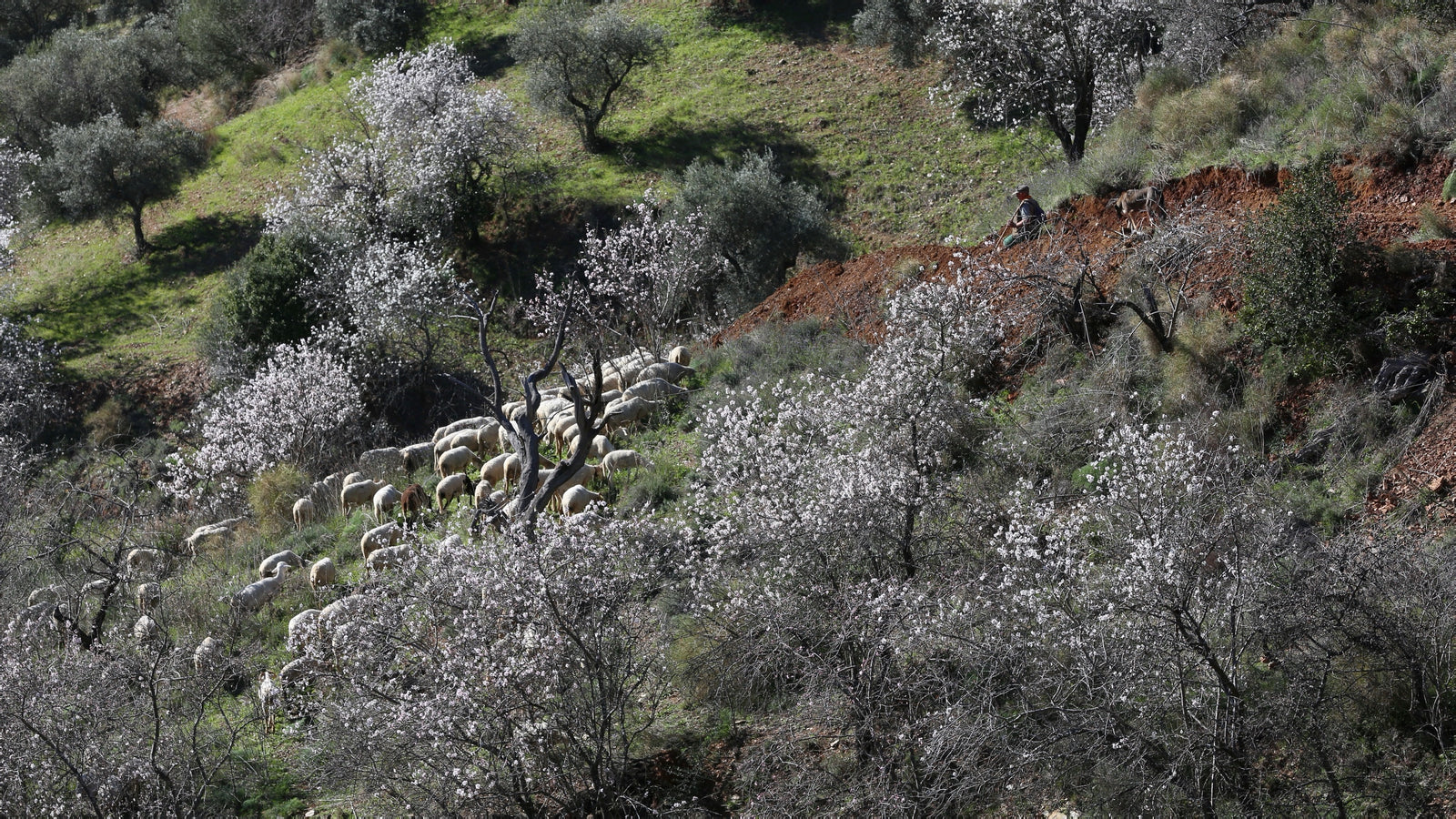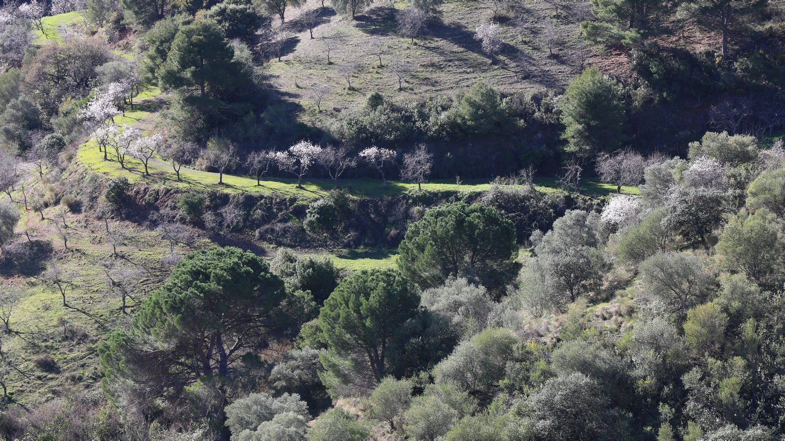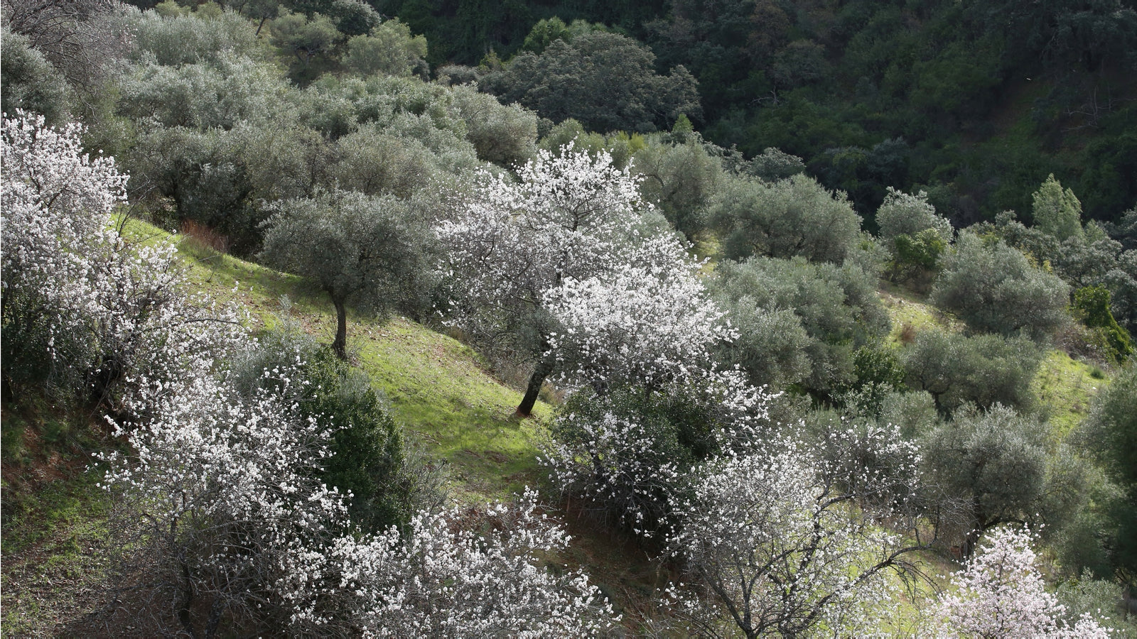 The mountainous land around Hacienda el Lince is covered in almond terraces